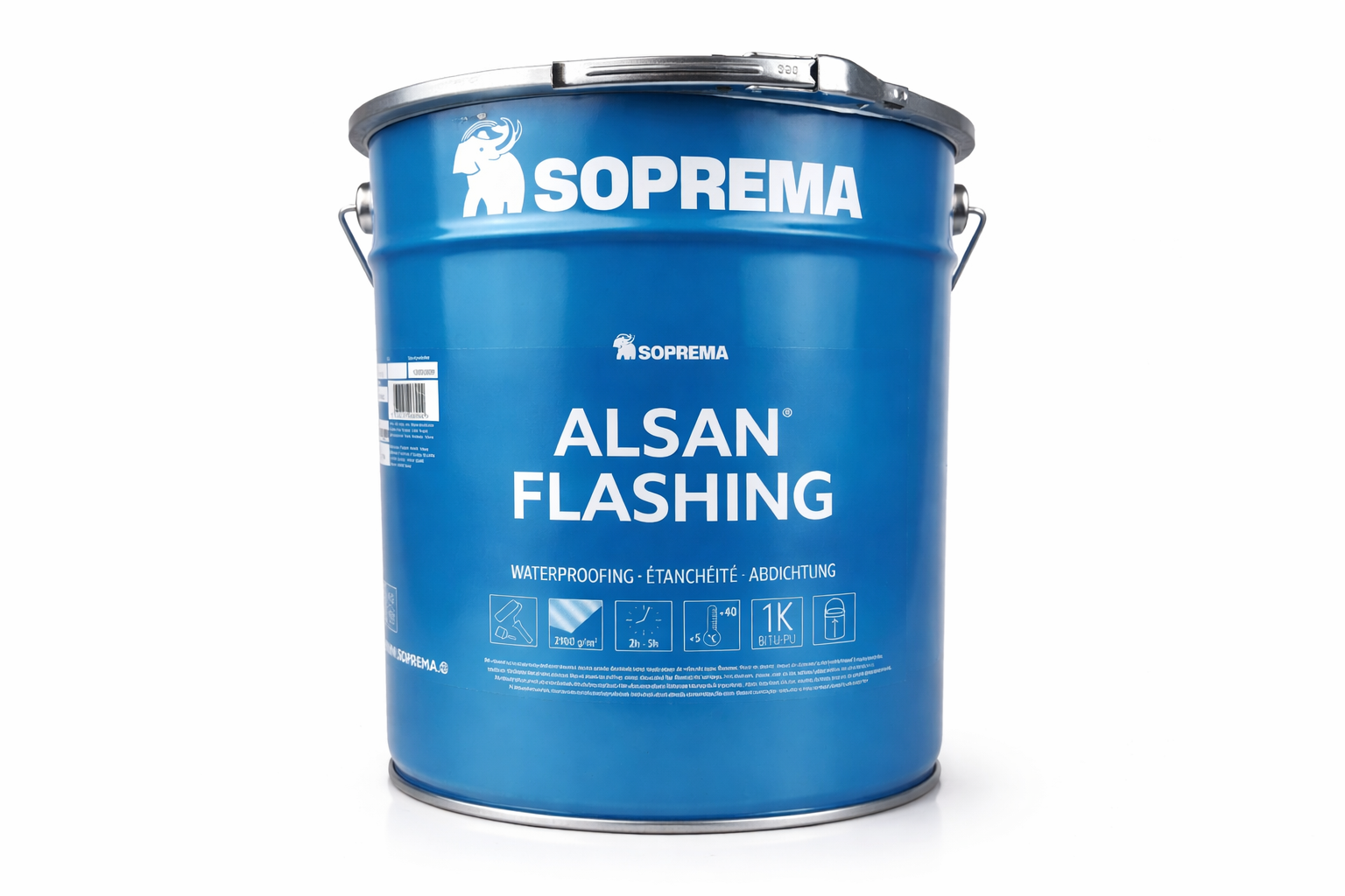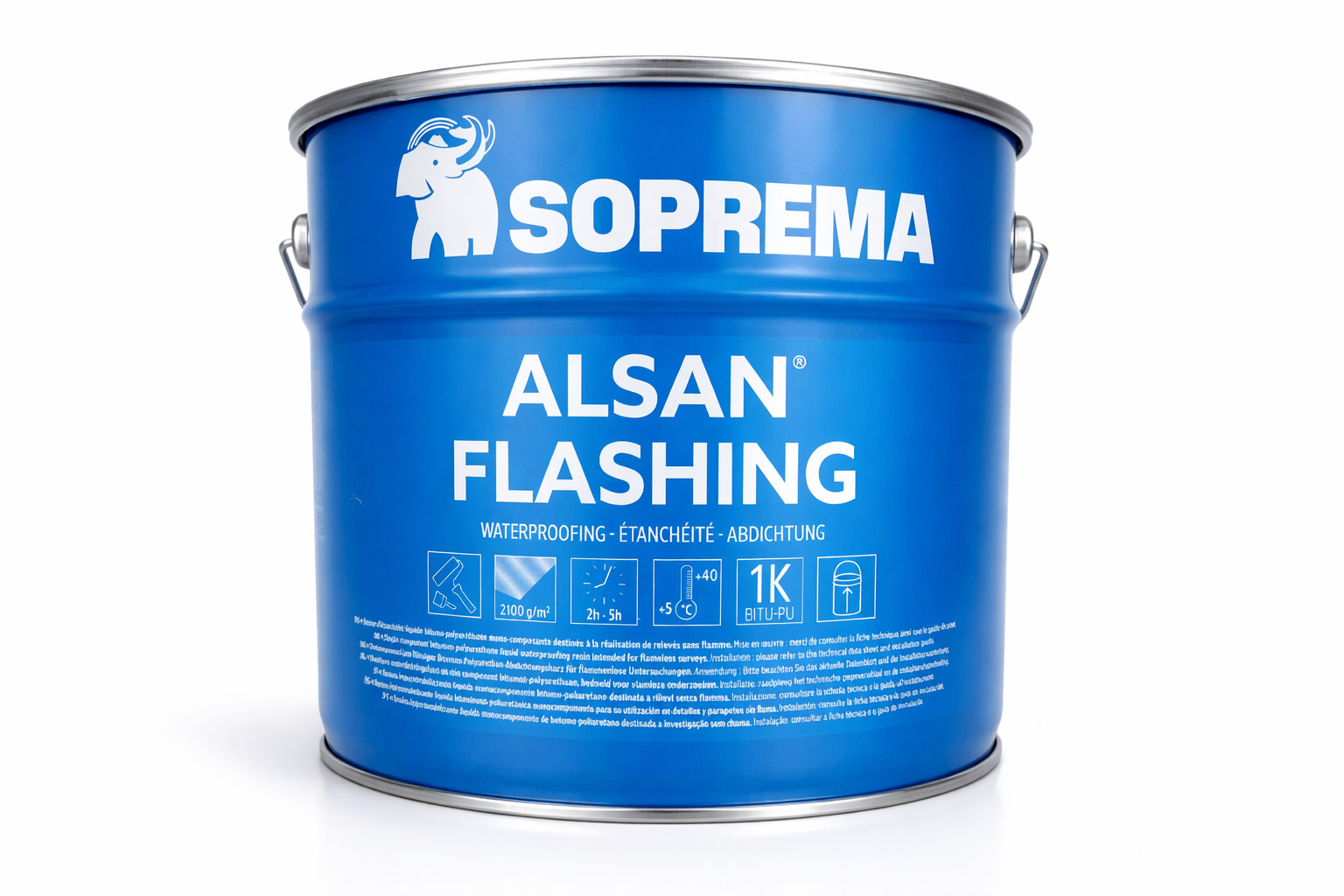 ALSAN FLASHING stosuje się do wykonania szczelnych łączeń na izolacji bitumicznej oraz łączenia różnych powierzchni w celu uzyskania ciągłości hydroizolacji.