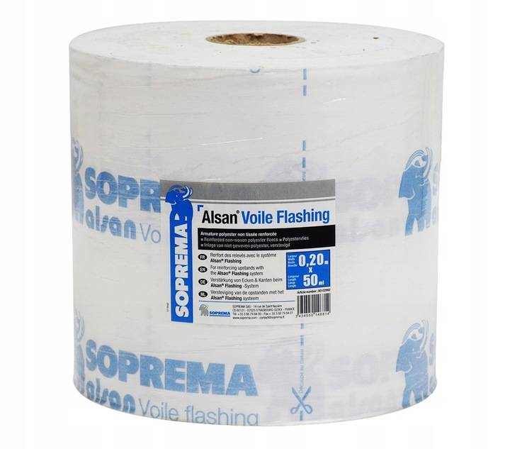 ALSAN VOILE FLASHING to wysokiej jakości taśma uszczelniająca wykonana z włókniny poliestrowej, stabilizowanej siatką poliestrową. Produkt przeznaczony jest do stosowania w systemach hydroizolacyjnych dachów płaskich, gdzie wymagane są trwałe, elastyczne i szczelne połączenia detali.