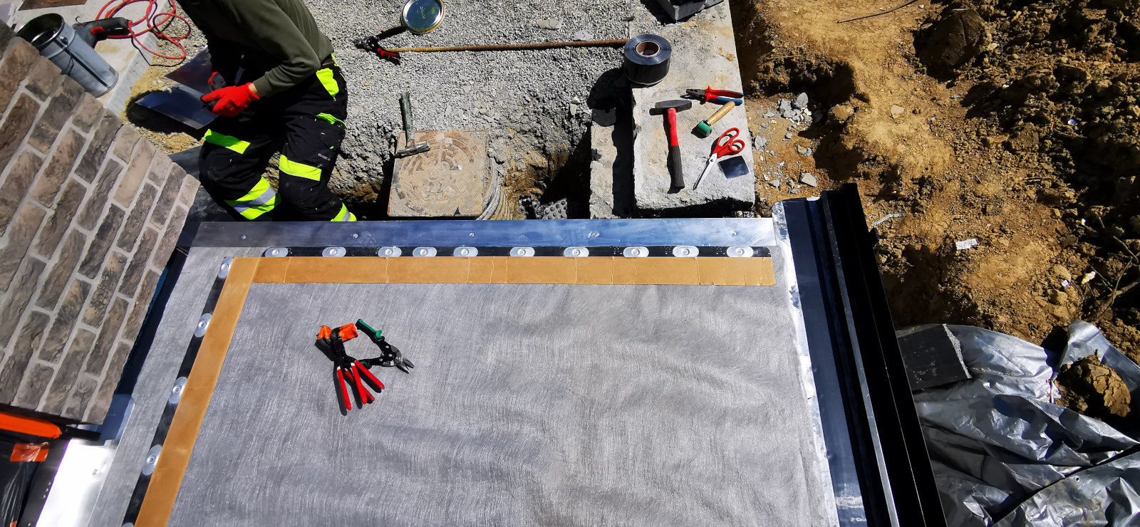 Montaż taśmy polega na mechanicznym zamocowaniu jej do podłoża za pomocą listew dociskowych (płaskowników) lub zatwierdzonych blaszek i elementów złącznych. Następnie membrana EPDM jest trwale łączona z samoprzylepną częścią taśmy po wcześniejszym zastosowaniu środka gruntującego QuickPrime Plus, który aktywuje proces wulkanizacji na zimno.